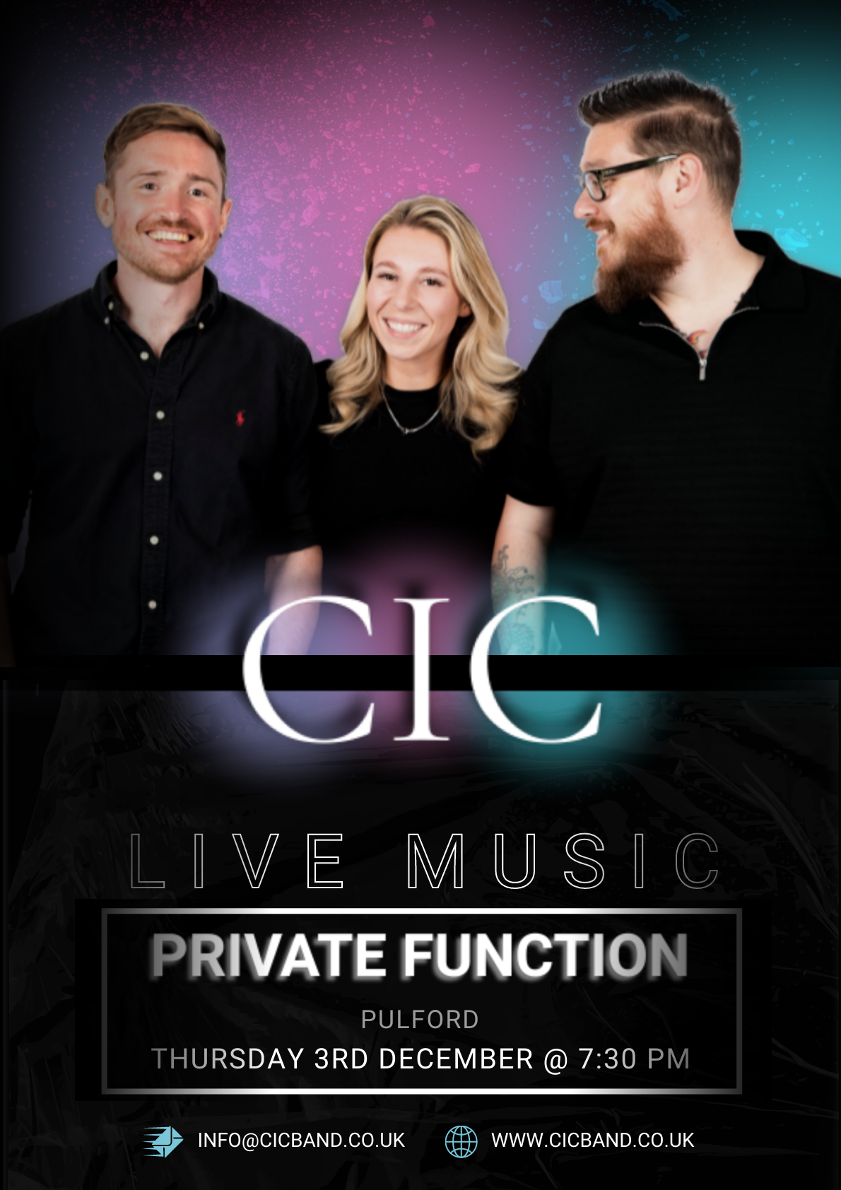 Elevate Your Event with CIC's Live Music: Whether it's a wedding, party, or corporate event, CIC is here to take your celebration to the next level with our live music. From unforgettable performances to tailored setlists, we bring the energy and atmosphere that make your occasion truly special.